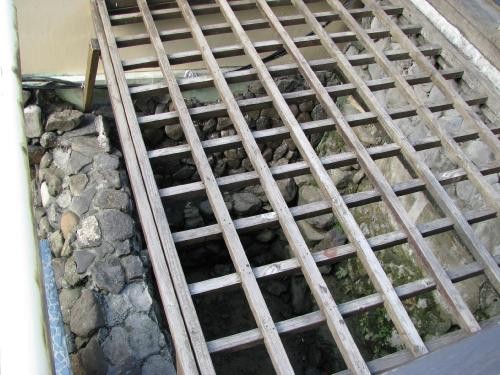 這年秋天,還有一件十分重要的工作,就是更換隔壁蕨園的屋頂排水溝(有時簡稱它叫天溝),蘭園也有幸更換到兩排得天溝。解決了蕨園大雨天裡面淹水的窘境,也間接促成了隔年蘭園的雨水回收瀑布施作的可能性。這都要感謝Wumao(吳建漢)大哥帶領承慶、中雲兩位哥兒們在屋頂上危險地施工,我也才有機會跟著他們學習,在這個季節只要是乾燥的天氣,雖然好施作,但在屋頂上施工,還是有虎頭蜂的風險,對他們除了感謝,還有佩服。